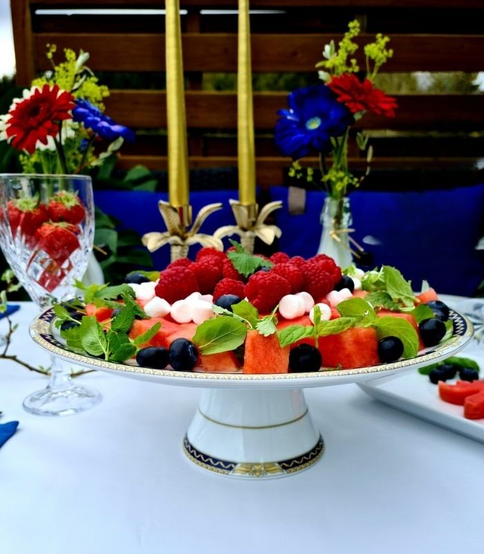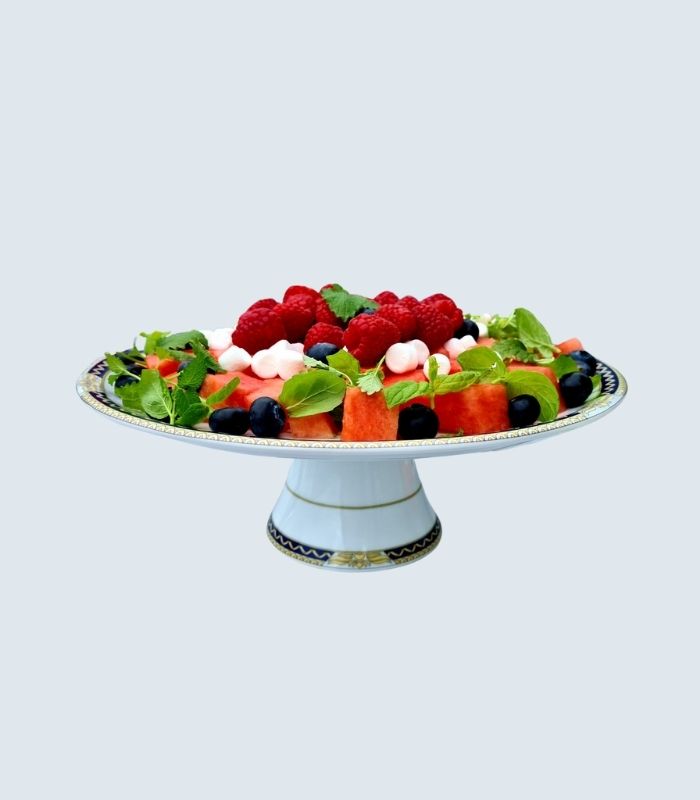 Løft borddekkingen med et servise som kombinerer moderne eleganse med klassisk herskapelighet. Dette eksklusive porselensserviset har et tidløst mønster i dyp kongeblå farge, vakkert innrammet av detaljer malt i gul – ikke gull – for et raffinert, men nedtonet uttrykk.