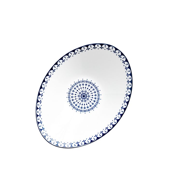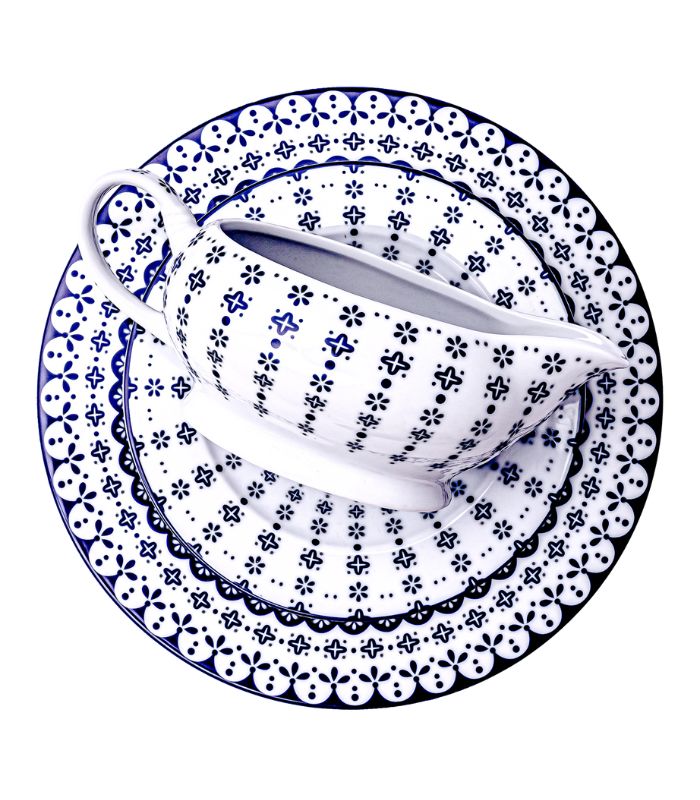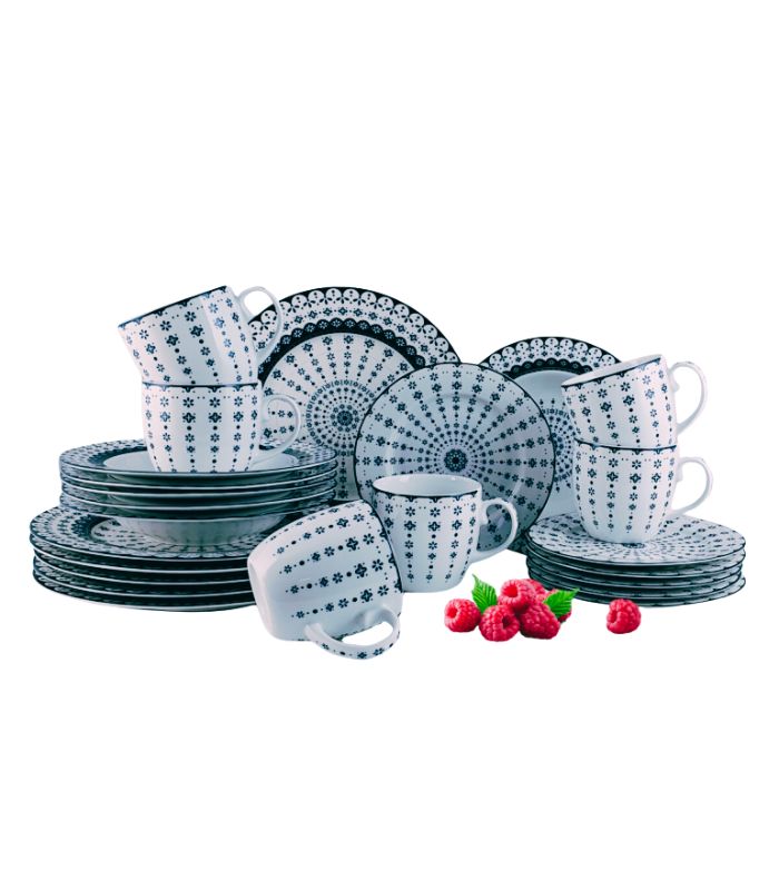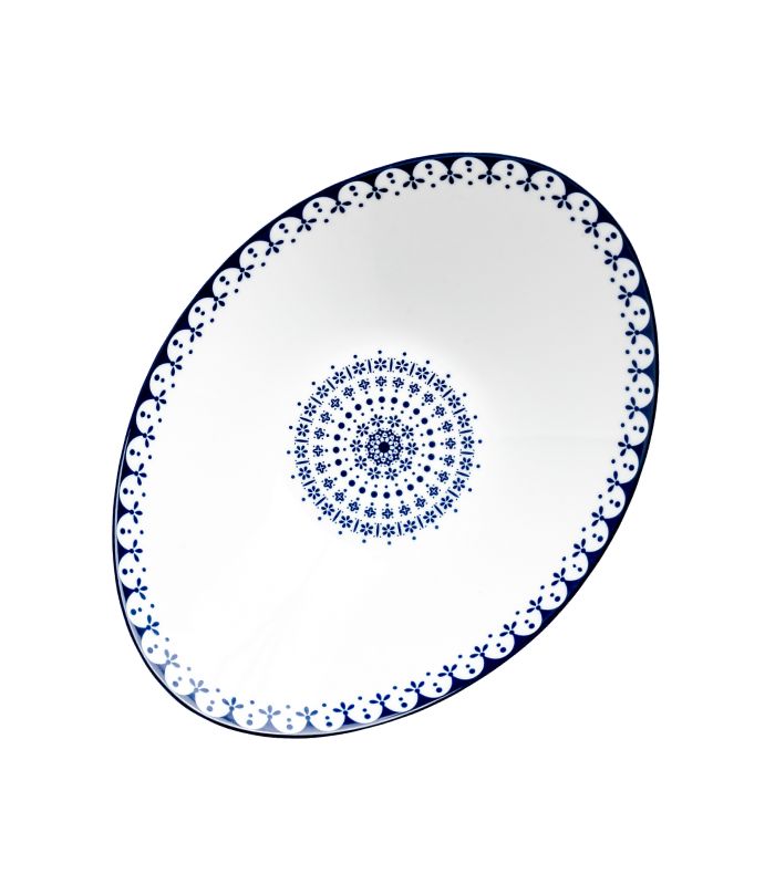 Oppdag Flisty – et klassisk og elegant servise i hvitt porselen med detaljrikt mørkeblått mønster. Det dekorative mønsteret er inspirert av klassisk europeisk design med et moderne preg, og gir serviset et sjarmerende og elegant utseende. Designet kombinerer tidløs sjarm med moderne brukervennlighet, og gir måltidene dine et løft – hver eneste dag.