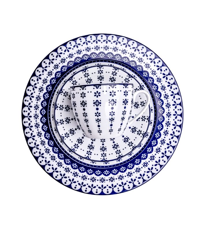 Oppdag Flisty – et klassisk og elegant servise i hvitt porselen med detaljrikt mørkeblått mønster. Det dekorative mønsteret er inspirert av klassisk europeisk design med et moderne preg, og gir serviset et sjarmerende og elegant utseende. Designet kombinerer tidløs sjarm med moderne brukervennlighet, og gir måltidene dine et løft – hver eneste dag.