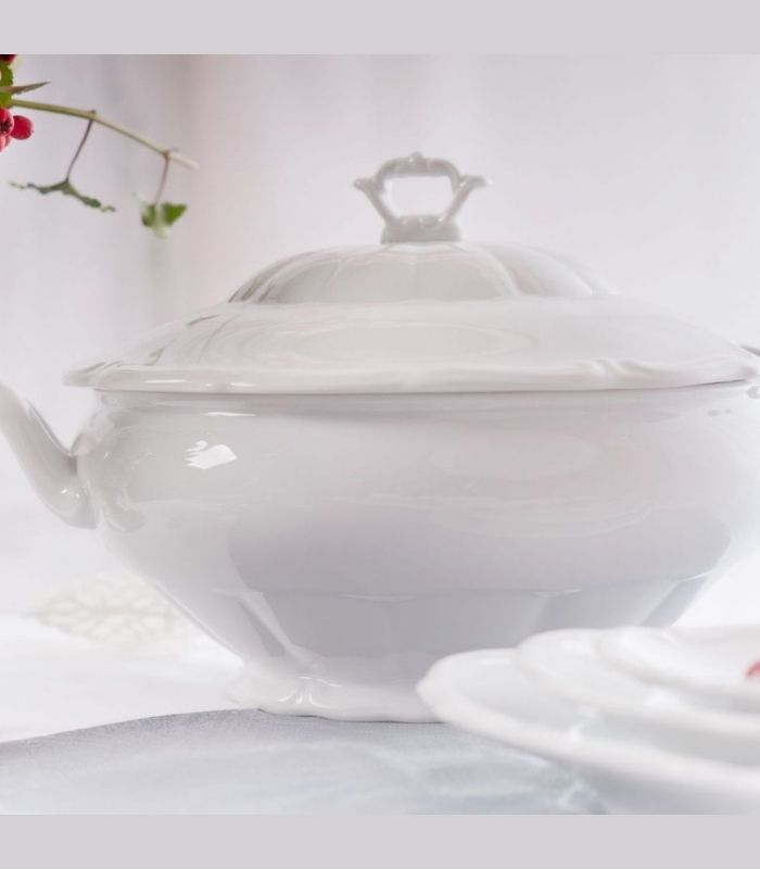 Gi borddekkingen et klassisk løft med Mari Therese – et tidløst servise med vakre, bølgende kanter og diskrete barokkinspirerte detaljer. Den rene hvitfargen og det elegante mønsteret gjør serien like vakker til hverdags som til spesielle anledninger.