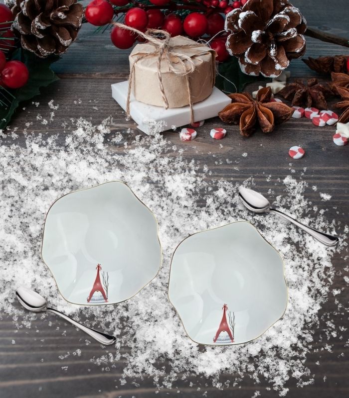 Serviset består av alt du trenger for julens mange måltider – fra tallerkener i ulike størrelser til boller, serveringsfat, kakefat, krus og kaffekopper. De gjennomførte detaljene, elegante formene og de komfortable håndtakene gjør hvert element både praktisk og vakkert.