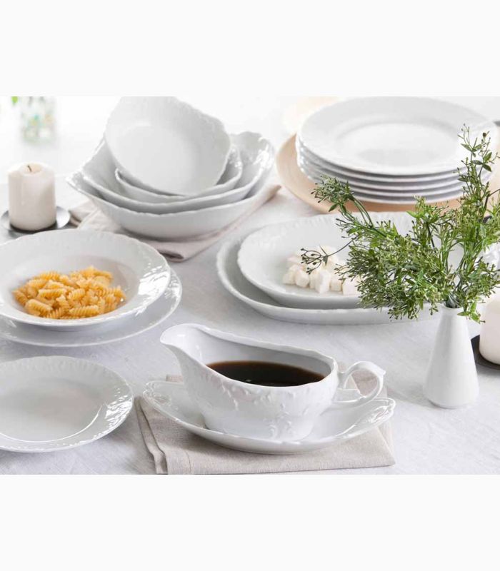 Rococo er et servise med sjel – preget av myke, asymmetriske linjer og relieffmønster som minner om skjell og havets bevegelser. Hver del i serien er en hyllest til klassisk håndverk og tidløs skjønnhet. Designet skaper en følelse av luksus og ro – perfekt til både hverdag og fest.
