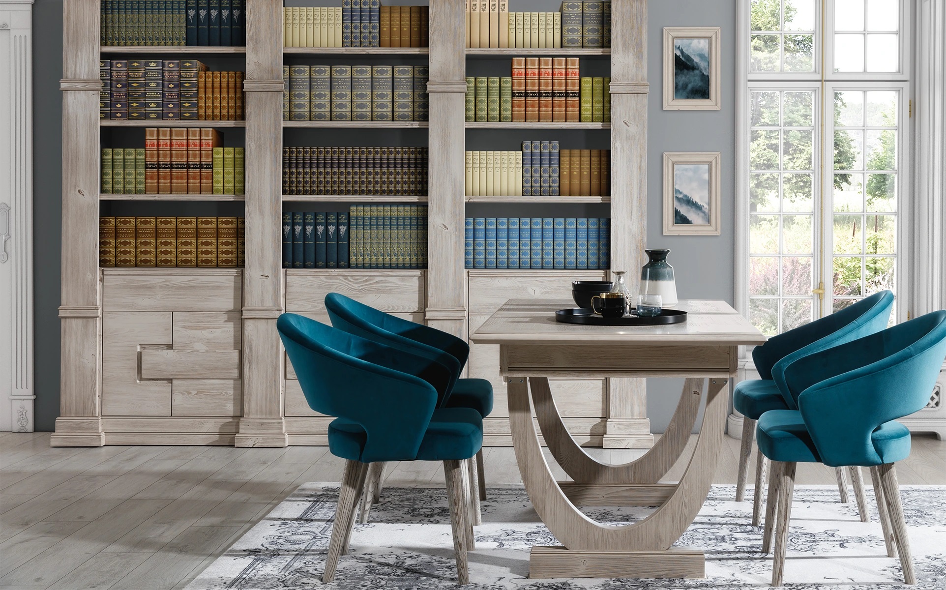 Nydelig spisestuestol i slitesterkt tekstil med meget god sittekomfort. Bena er tilgjengelig i to farger: eik og furu.