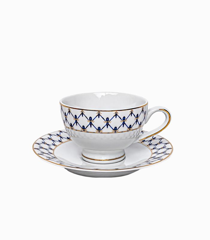 Gi måltidene et snev av kongelig eleganse med dette utsøkte porselensserviset. Dekorert med et klassisk blått mønster og delikate gullkanter, kombinerer dette serviset tradisjonell sjarm med moderne raffinement. Hver del er nøye utformet i høykvalitets porselen, perfekt for både hverdag og festlige anledninger.