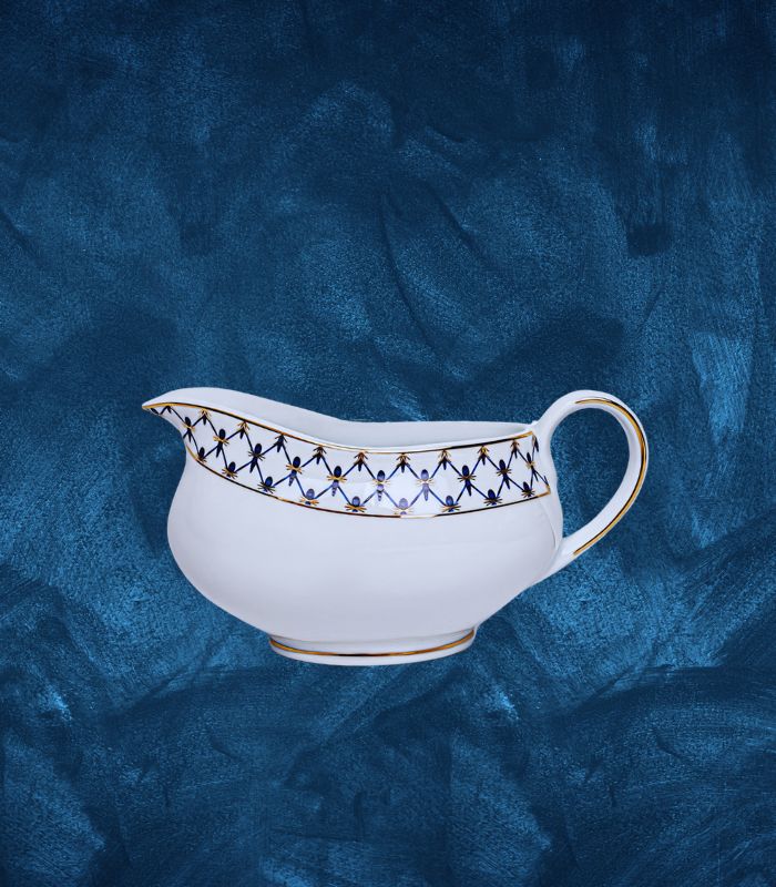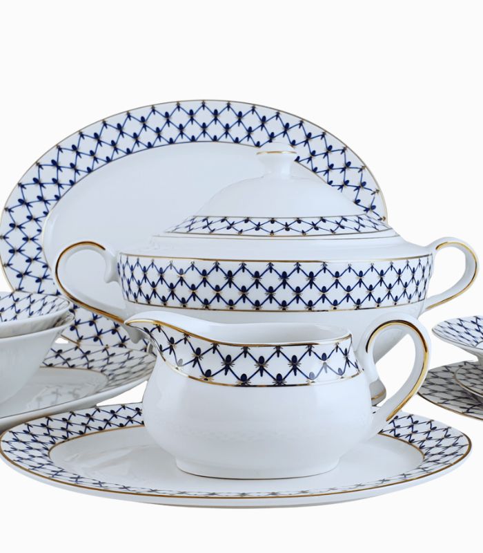 Gi måltidene et snev av kongelig eleganse med dette utsøkte porselensserviset. Dekorert med et klassisk blått mønster og delikate gullkanter, kombinerer dette serviset tradisjonell sjarm med moderne raffinement. Hver del er nøye utformet i høykvalitets porselen, perfekt for både hverdag og festlige anledninger.