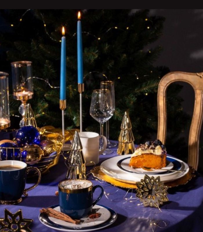 Farge: mørk blå, gull